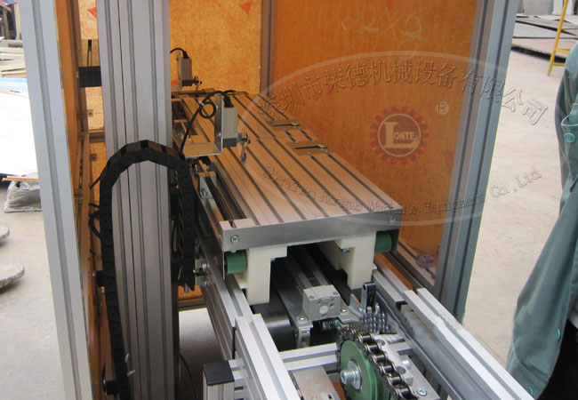 高铁门自动装配流水线技术优势:针对高铁门驱动部分,尺寸长短不一且很沉重,不好定位,设计一套能自动流动工装小车,小车采用一组带手动离合驱动小车,一组被动小车,且产品放到主驱动小车,通过一个升降压板压紧产品的底板(可适应2-6mm的底板),另一组被动小车依产品长度调到合适位置,由升降压板压紧定位好进行产品组装,组装一部分后,由输送带送至下一站,进行下一道工艺组装,一共进行9道工序组装后,产品取下,工装小车由提升机送至下层返回输送带,从另一头起点提升循环使用。