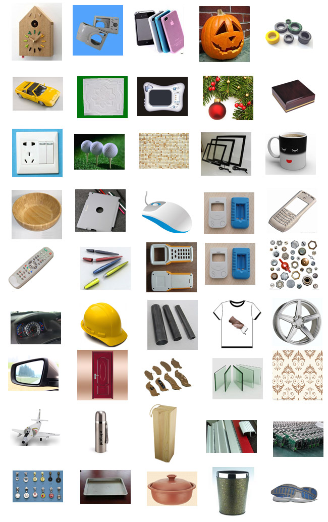 相机镜头、笔记本外壳、音响外壳喇叭、收音机、电视机、遥控器、插座、LED手电筒、DVD、鼠标、键盘、耳机、灯具等;