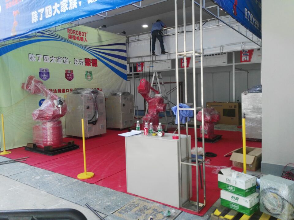 为了展示我们的机器人,给大家留个好印象,从决定参加展会后,就进入积极准备阶段,重新设计的宣传册等相关资料。就在昨天,我们的同事不辞辛苦,顶着40多度高温,前去搭建会场,现会场所有东西到到位,喷涂机器人设备也已安装好了,就等您的到来!