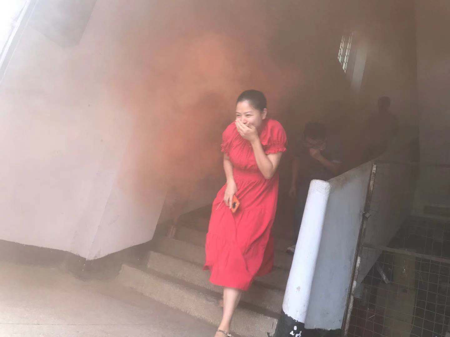 8月31日下午三点, 随着一股浓烟飘进办公楼内,急促刺耳的警报声响起,消防应急疏演练正式开始。有同事在楼道旁引导员工快速疏散,每个人各捂住口鼻,低头有序沿着安全通道,撤离到露天地带。集合完毕后,各部门清点人数,并上报。整个演练过程安全、快速,仅用时3分钟。