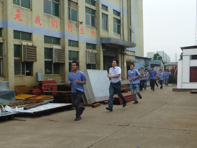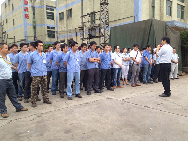 2014年4月26日17点整,消防警铃响起,义务消防队疏散组成员在第一时间分别赶到公司办公楼各楼层以及宿舍内,在他们的喊话提醒下将所有员工于120秒内有序地疏散到厂外的安全区域,在整个过程中,秩序井然、无人员受伤和拥挤踩踏的情况。要知道此次逃生演习的过程员工是不知情的,仅疏散组成员提前开会讨论过。逃生演习拉开了此次消防演习的序幕。
