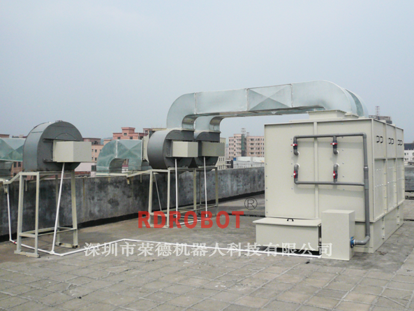 (1)废气处理设备设计成2套,一套处理喷涂仓的废气,一套处理涂层干燥、固化过程中产生的废气,设备放置在喷涂间顶上。