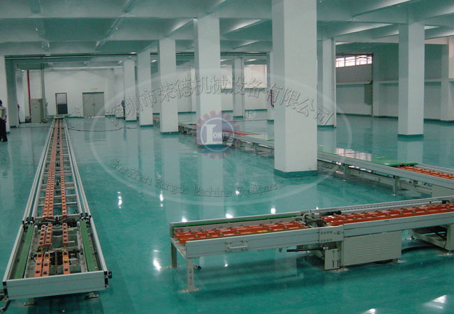 一般辊道都采用动力输送辊道,为双层辊道,整线均采用直线型双层机动辊道,上层转运装工 件的托盘,下层空托盘返回,在线头安放升降机,升降机安装不能破坏地面,升降机尽量采用气缸驱 动,需要有安全防护罩。