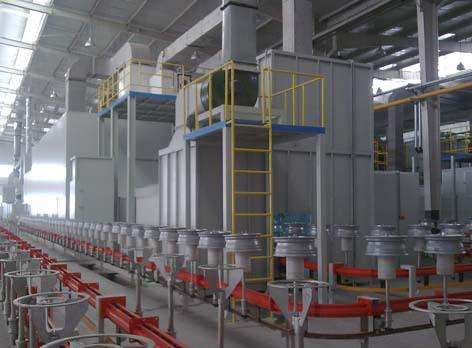 涂装生产线主要工艺流程是上件→抛丸除锈→清理吹灰→喷铝→底漆喷漆流平→底漆烘干→中涂喷漆流平→中涂烘干→面漆喷漆流平→面漆喷漆烘干→下件。涂装线的防腐环境是室外(不直接淋雨),高架桥腹部波纹板。?;つ晗尬ば?,50年。主要针对工厂构件外表面涂漆,不考虑施工后涂装。前处理抛丸,Sa3.0级、粗糙度/75-120um、清洁度/1级?;耐坎阄缁∪扰缏粒?20-150μm;底涂层为环氧富锌底漆,60-80μm,90℃60分钟烘干。中间涂层为环氧云铁中间漆,150-180μm;90℃90分钟烘干。 面漆为丙烯酸聚氨酯或氟碳漆面漆,40-60μm。90℃60分钟烘干。总漆膜厚度:≥250μm。