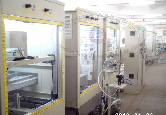 自动上料机构 :采用重力式拉料机构,上下两层,工件自动翻面,木尺固定框采用铝板制作。