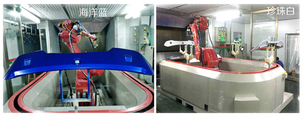 汽车尾翼机器人喷漆珍珠白、海洋蓝