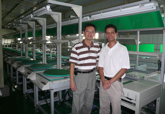 适用范围:适用于电子产品(电脑、LCD液晶、显示器、手机等通信产品零部件)插件、装配、老化、测试、包装等成套生产线。