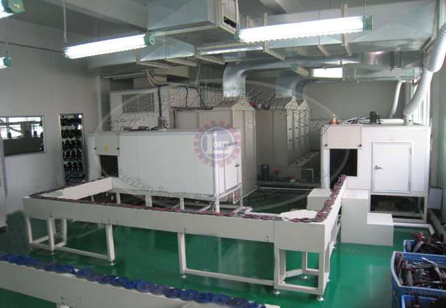 头盔安全帽自动喷涂线:在线喷涂,效率高,产量大;喷涂与烘烤一体化,省人力;喷枪参数数字化管理,免喷涂师傅;喷涂区域无尘级别可达万级,产品合格率高,品质稳定。